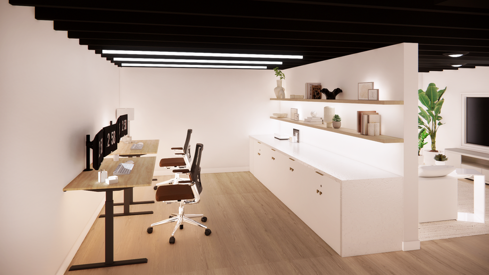 This basement truly achieved the goal of being an efficient space where my clients can work quietly while feeling motivated. We couldn’t be happier with the results!